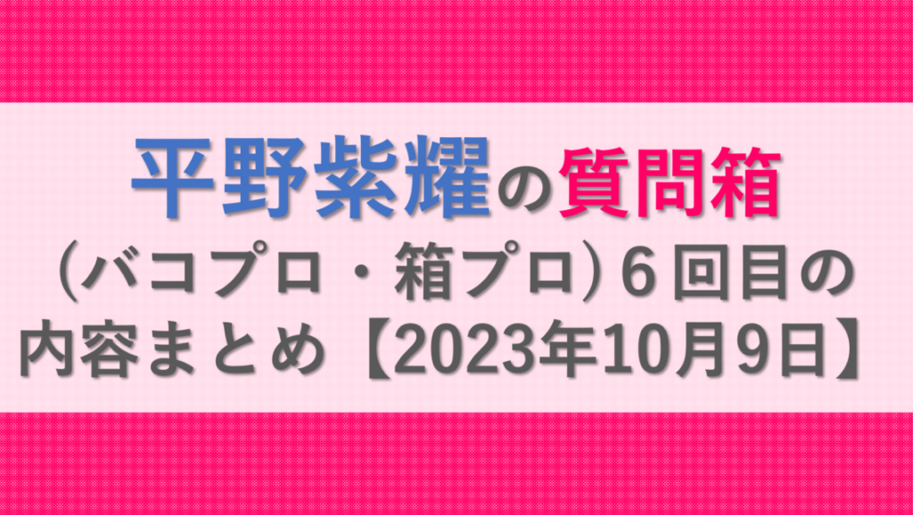 平野紫耀の質問箱(バコプロ・箱プロ)6回目の内容まとめ【2023年10月9日】