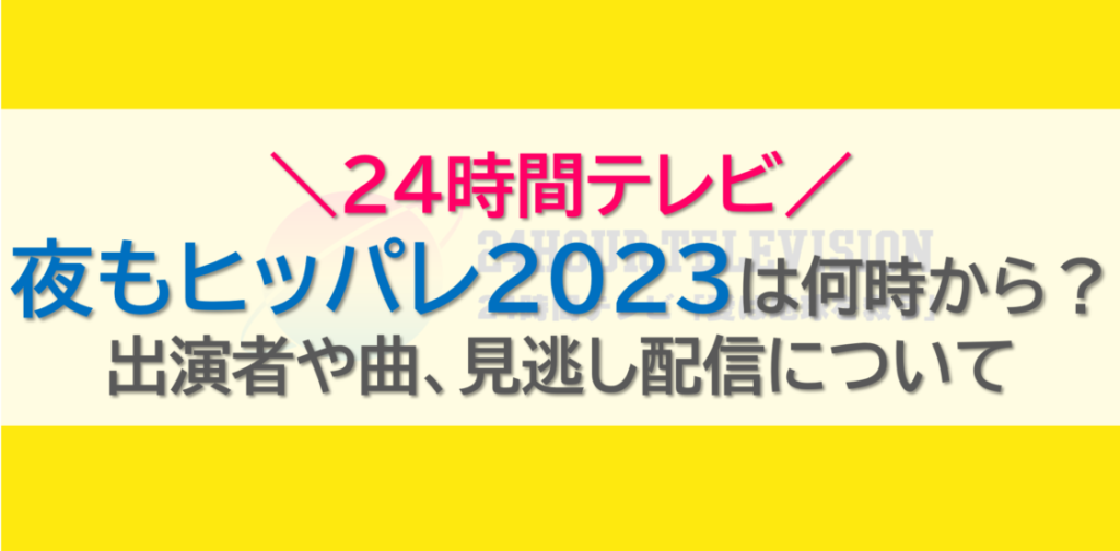 24時間テレビ2023夜もヒッパレは何時から?出演者や曲、見逃し配信について