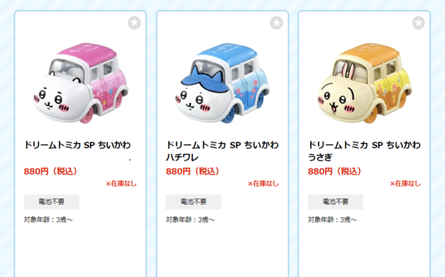 大人気のちいかわトミカ、まだ購入可能なルートもありますので、欲しい方は是非早めに動きましょう!