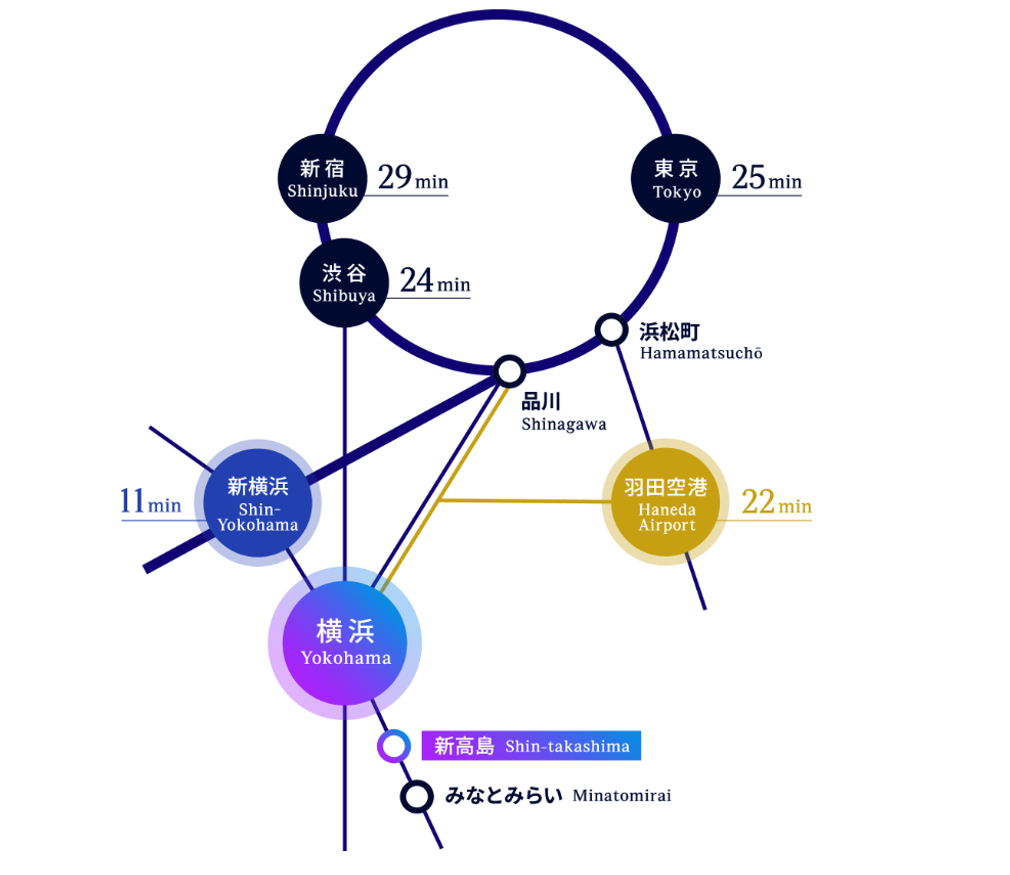 また、各主要駅または羽田空港から横浜駅へのアクセスは下記になります。