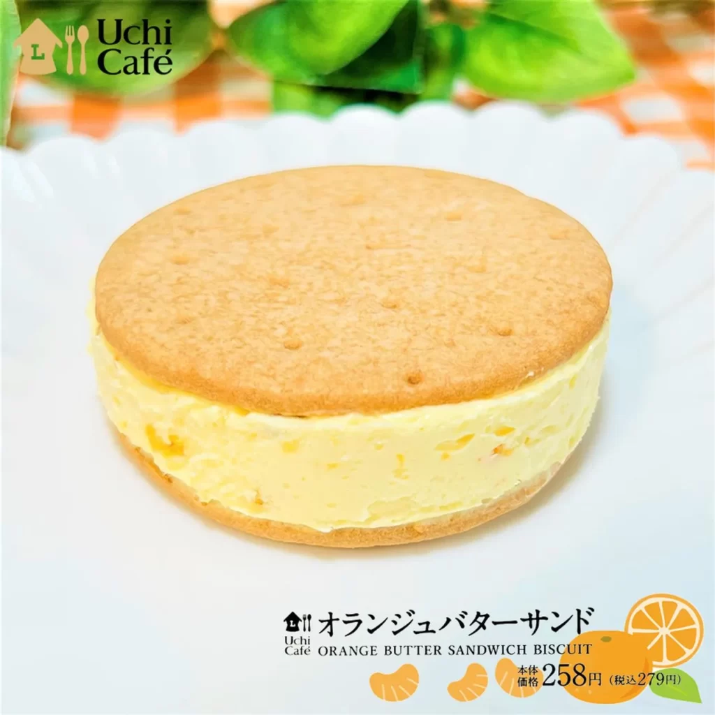 しっとりビスケットで、風味が爽やかなバタークリームをサンドした、ローソンオランジュバターサンド。