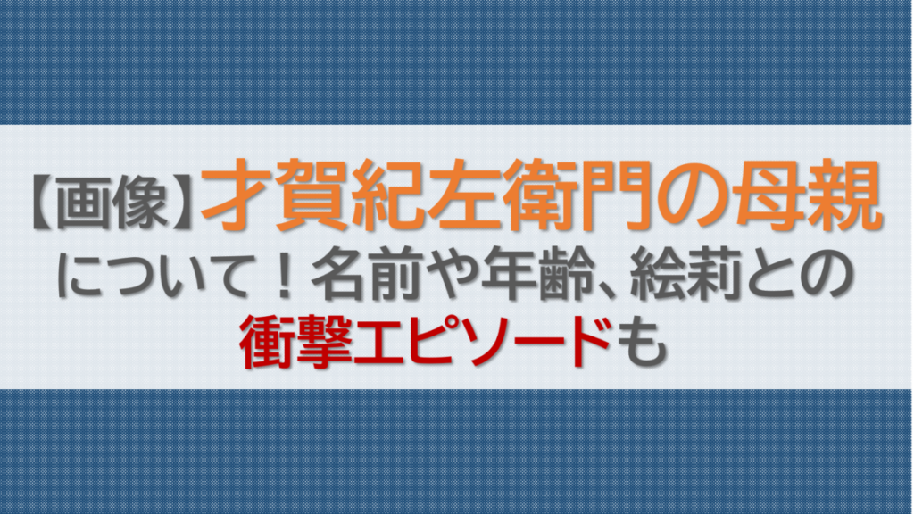 【画像】才賀紀左衛門の母親について!名前や年齢、絵莉との衝撃エピソードも