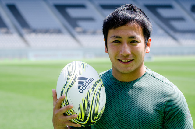 過去、五郎丸歩さんが務めたキッカーを担っており、可愛い笑顔と、プレー中の真剣な表情とのギャップが素敵です。