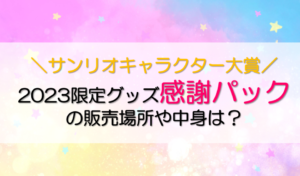 サンリオキャラクター大賞2023限定グッズ【感謝パック】の販売場所や中身は? サンリオキャラクターの人気投票イベント「2023年サンリオキャラクター大賞」の最終結果が発表されましたね! また同時に「2023年サンリオキャラクター大賞」応援ありが...