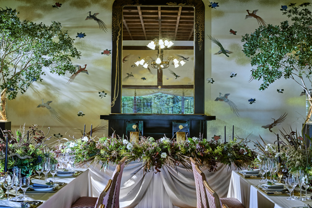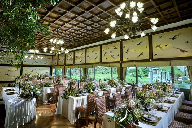 おふたりの披露宴会場は、壁の装飾が美しく印象的な明治記念館内の「金鶏」というバンケットです。